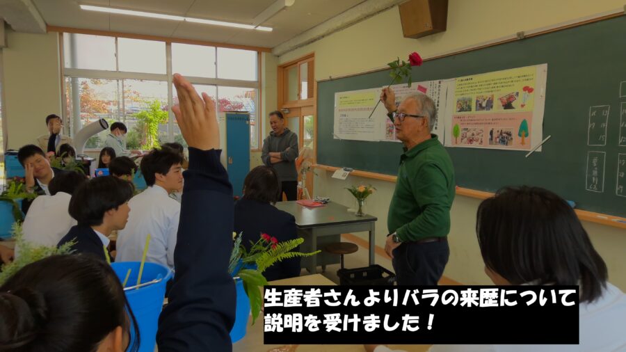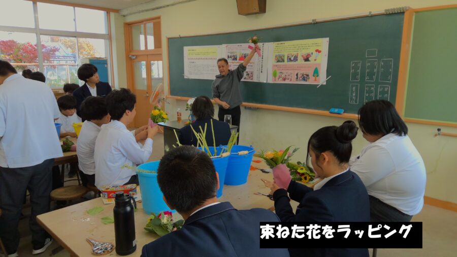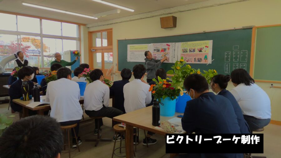 園芸科2年生「総合実習」の授業で、稲沢市花き振興会による花育活動の一環としてビクトリーブーケを制作しました。