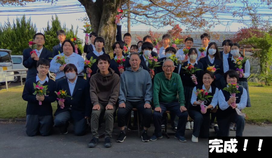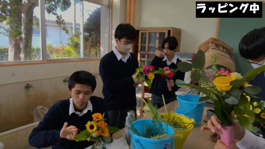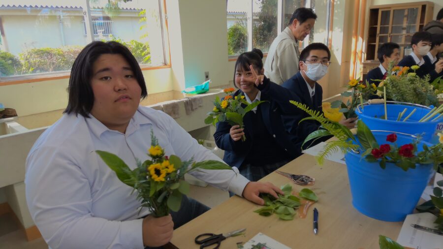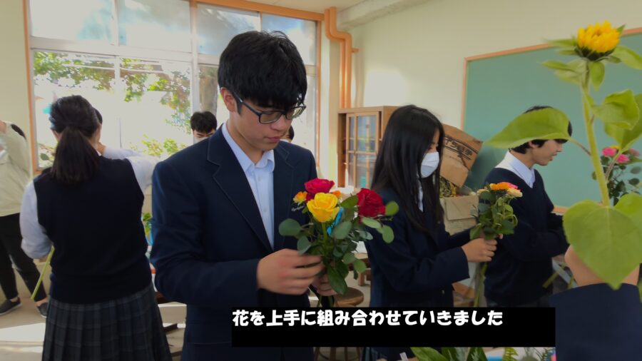 ブーケづくりは初めての生徒が多かったですが、どうやったらきれいにできるか考え、夢中になって制作していました。できたブーケを見て大満足の生徒たちでした。