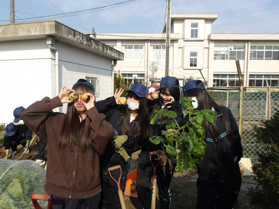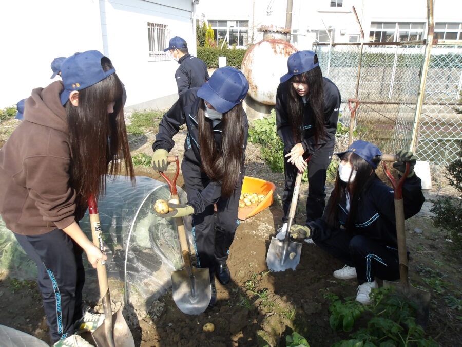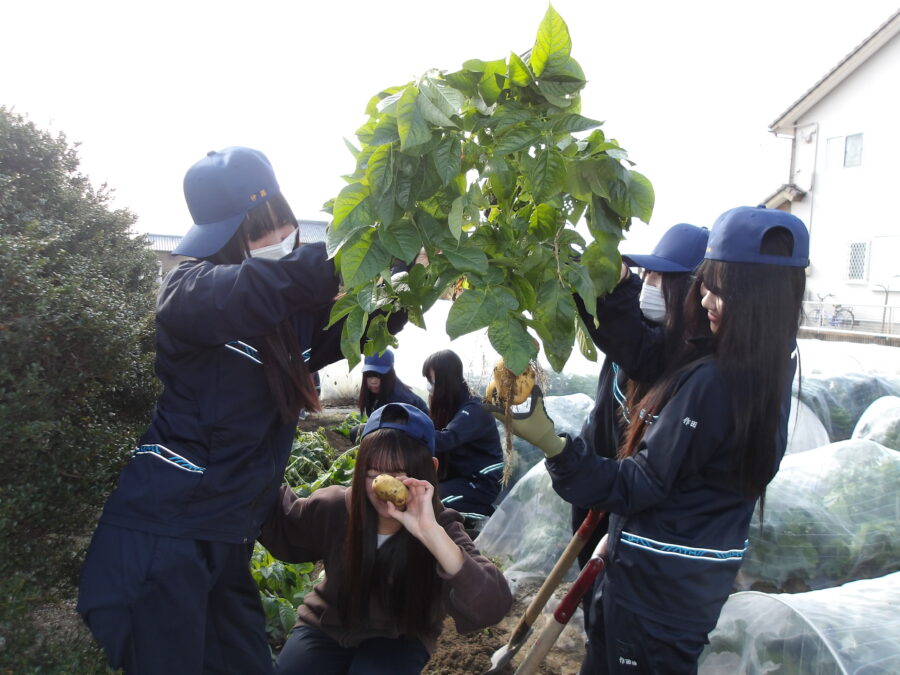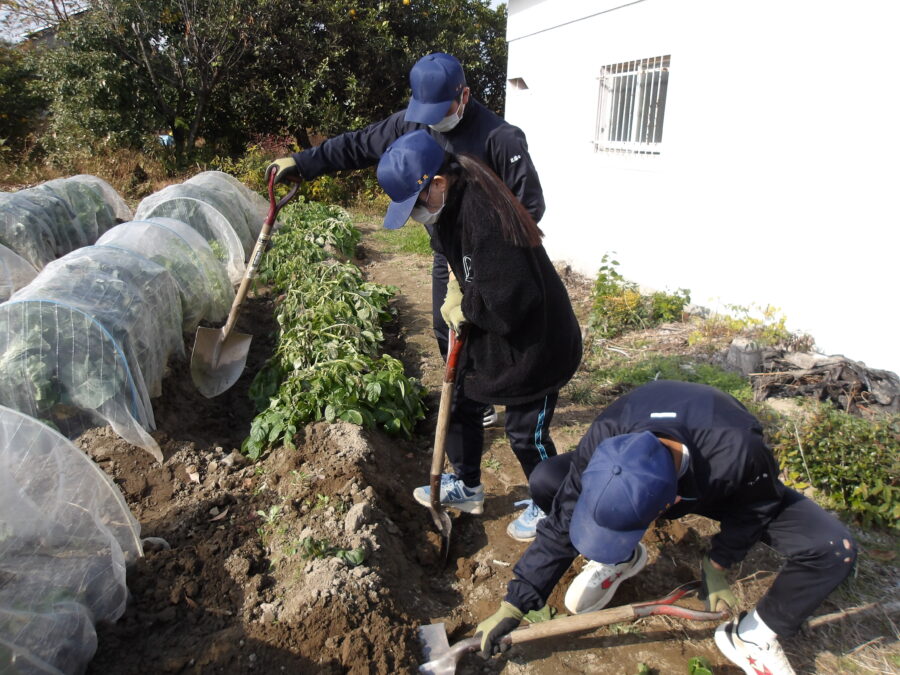 2025.12.17 普通科学科ブログ 普通科 農業と環境 ジャガイモとミカンの収穫 9月から育ててきたジャガイモを収穫しました。 別日には、美味しいミカンの見分け方を学んだあと、ミカンを収穫しました。