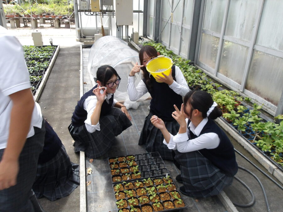 9月11日(木)の農業と環境では、ハクサイ・ブロッコリー・レタス等の苗に追肥をしました。