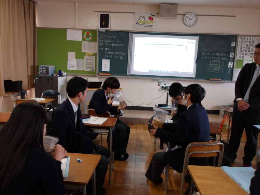 環境デザイン科では今年度から稲沢市平和町の桜ネックレス再生プロジェクトを行っています。その一環で、剪定した枝をチップとして再利用する試みを行っています。今回は、渡辺林産工業の渡辺修様にお越しいただき、チップの種類や製作過程等を御講義いただきました。渡辺林産工業で販売されているチップを実際に御持参いただき、大きさや香り等の違いも学ぶことができました。