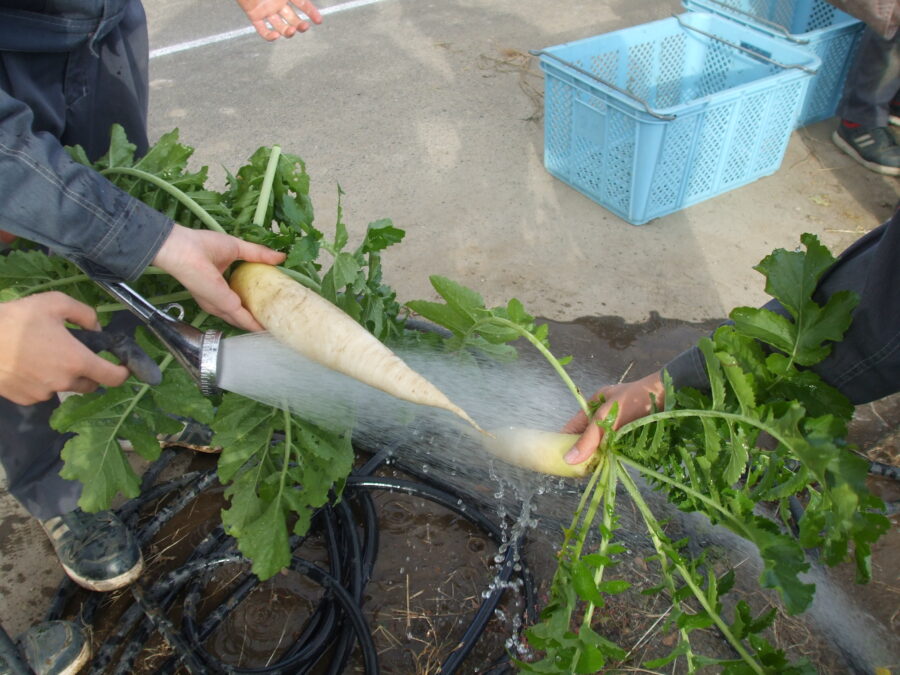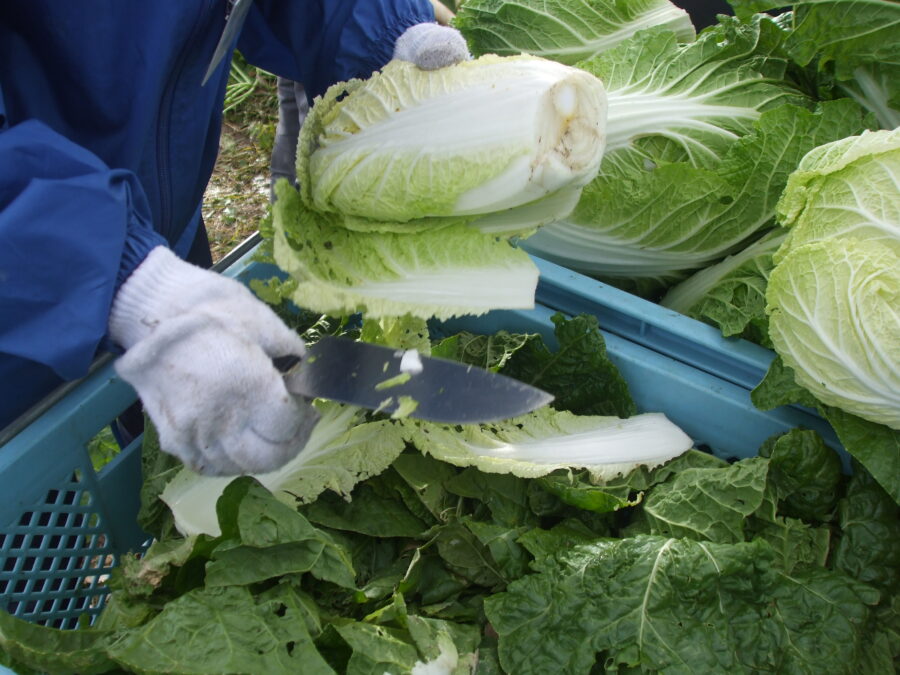 11月19日(水)のふれあい農園は、黒豆の調製とハクサイ・キャベツの収穫をしました。黒豆の調製では、さやから取り出す作業を協力して行いました。黒豆の量が多く大変でしたが、みんなで話しながら効率的に作業を進めることができました。ハクサイとキャベツの収穫は、収穫の楽しさを味わいながら行いました。