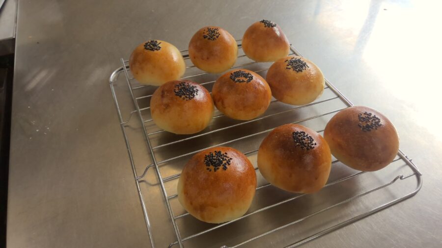 こしあんは乾燥小豆を圧力鍋を使って柔らかく煮、裏ごしてから砂糖と塩を入れて炊きました。あんこを作りながらパン生地を仕込み、手作りあんぱんができました。手間がかかった分、美味しさもひとしおで、生徒も「今まで食べたパンの中で一番美味しかった!」と感動していました。