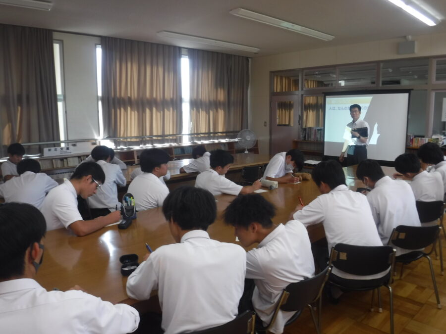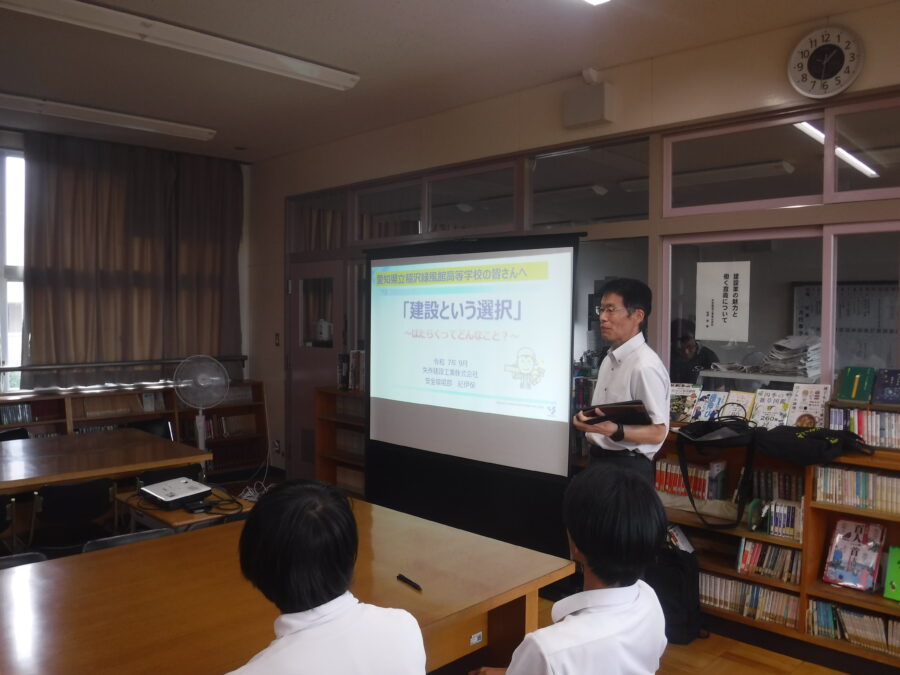 9月18日(木)に農業土木科の2年生対象に矢作建設工業株式会社の紀伊 保様の出前授業を行いました。働くことの意義や土木業界のやりがいを紀伊さんの実体験を元に講話が実施されました。