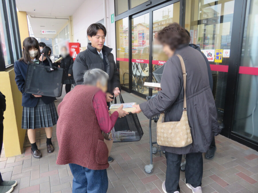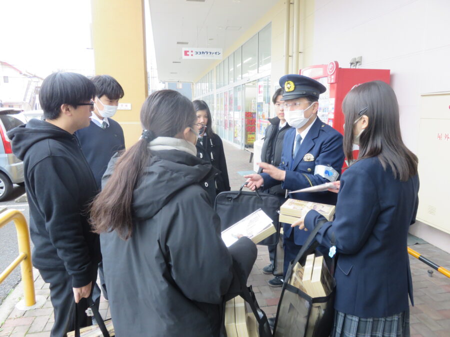アクロスプラザ稲沢にて生徒会執行部が稲沢警察署と連携した特殊詐欺対策に関する啓発ボランティアを行いました。生徒は、最初声をかけるに勇気がいるようでしたが、徐々に慣れていき、特殊詐欺防止の説明をしていました。